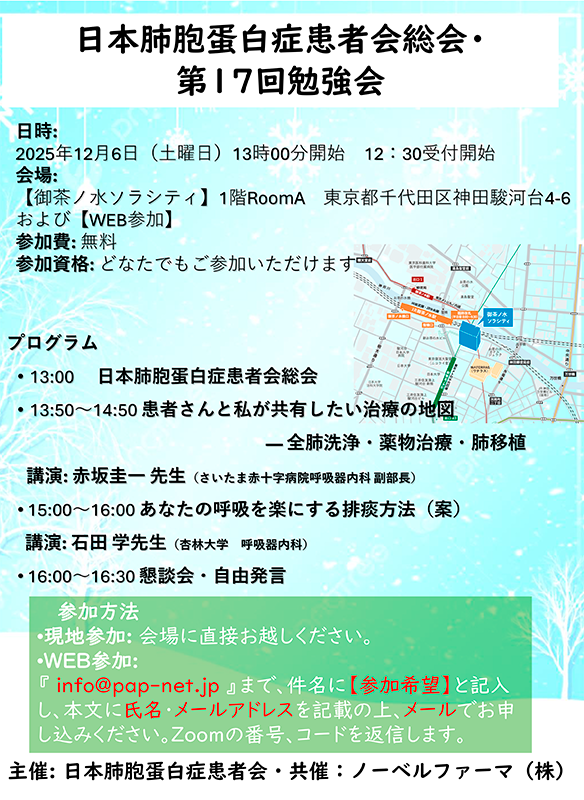 2025年12月6日 第17回肺胞蛋白症勉強会および総会を開催します